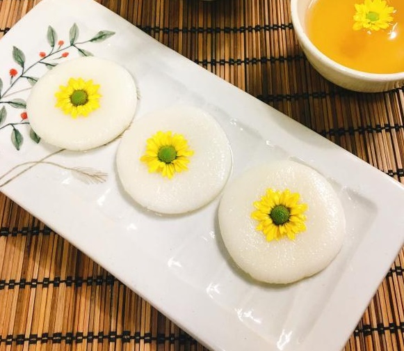 - 국화전은 국화 꽃잎을 따서 찹쌀가루와 함께 반죽하여 기름에 부쳐 먹었다고 합니다.