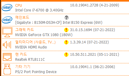 위 페이지를 참고하시고 다운로드 받으시면 CPU, 메인보드, 그래픽카드 그 밖에 다른 장치들 까지 하나하나 확인할 수 있습니다.