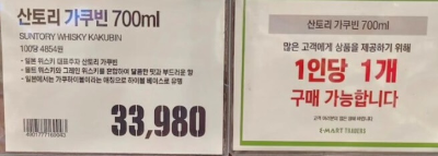 산토리 가쿠빈 위스키 700ml 가격은 대략 34,000이다.